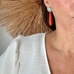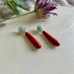 Pendiente cierre de tornillo con calcedonia azul y lágrima polvo de piedra coral.