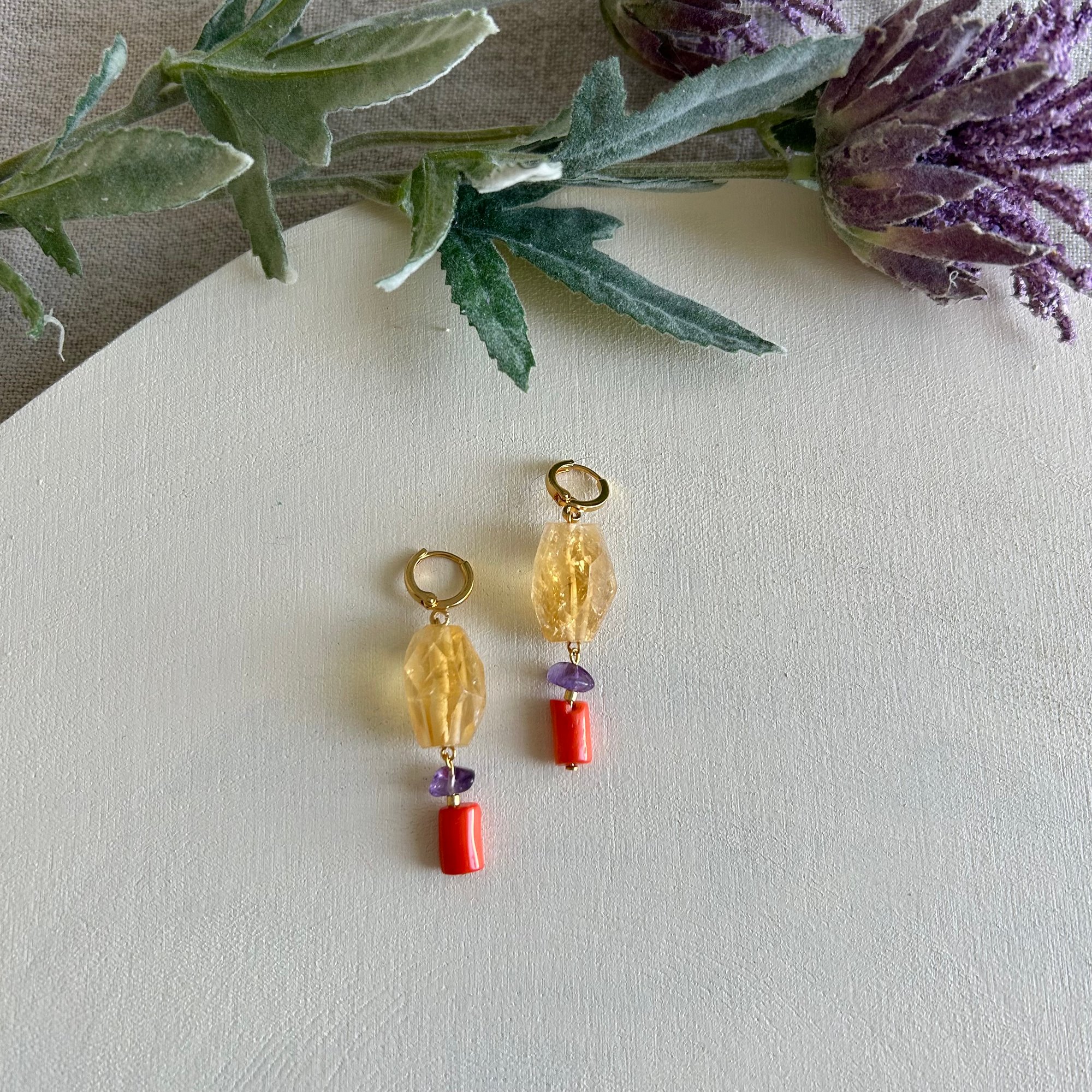 Aro dorado bañado combinando citrino ,coral y amatista.