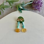 Pendiente Citrino combinado con amazonite y cierre de tornillo dorado bañado.