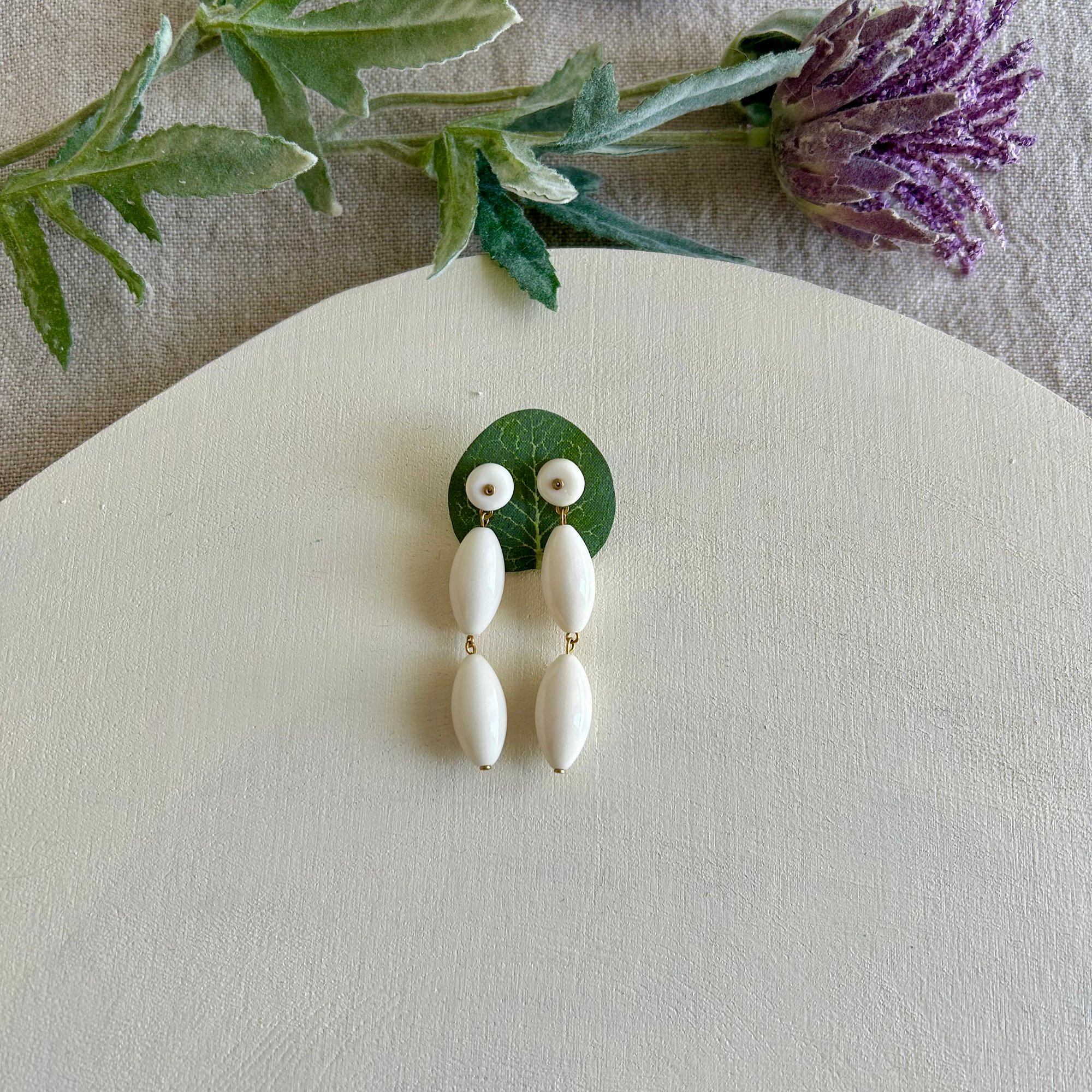 Pendiente Hueso natural con cierre de tornillo dorado bañado.