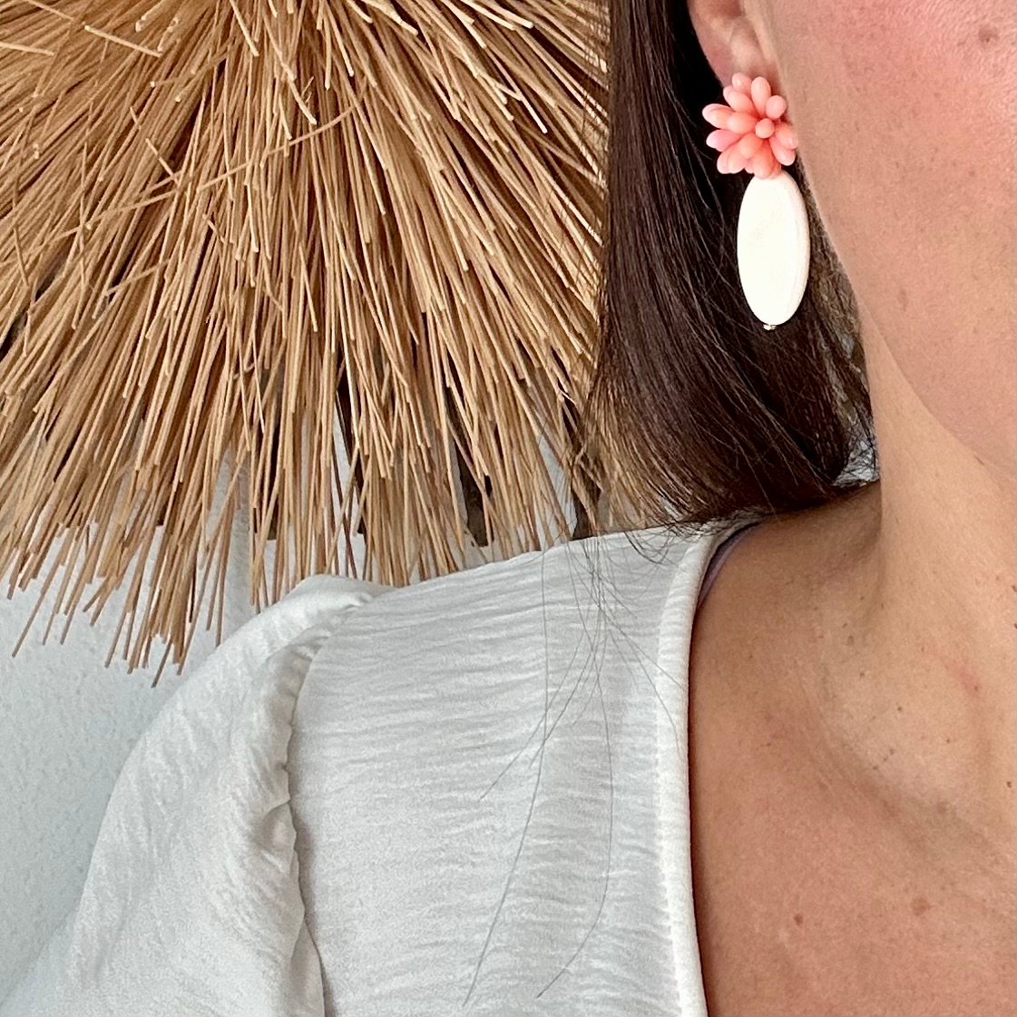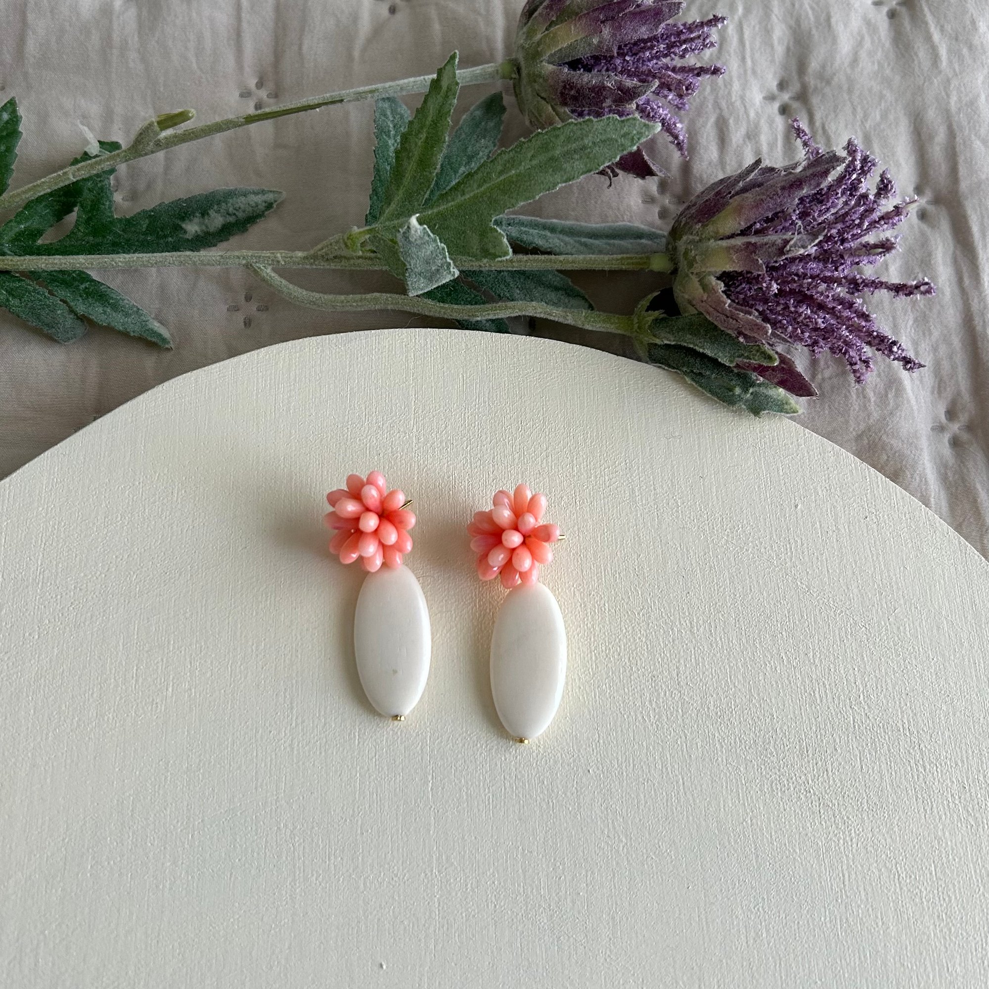 Pendiente Hueso y Flor de Coral-