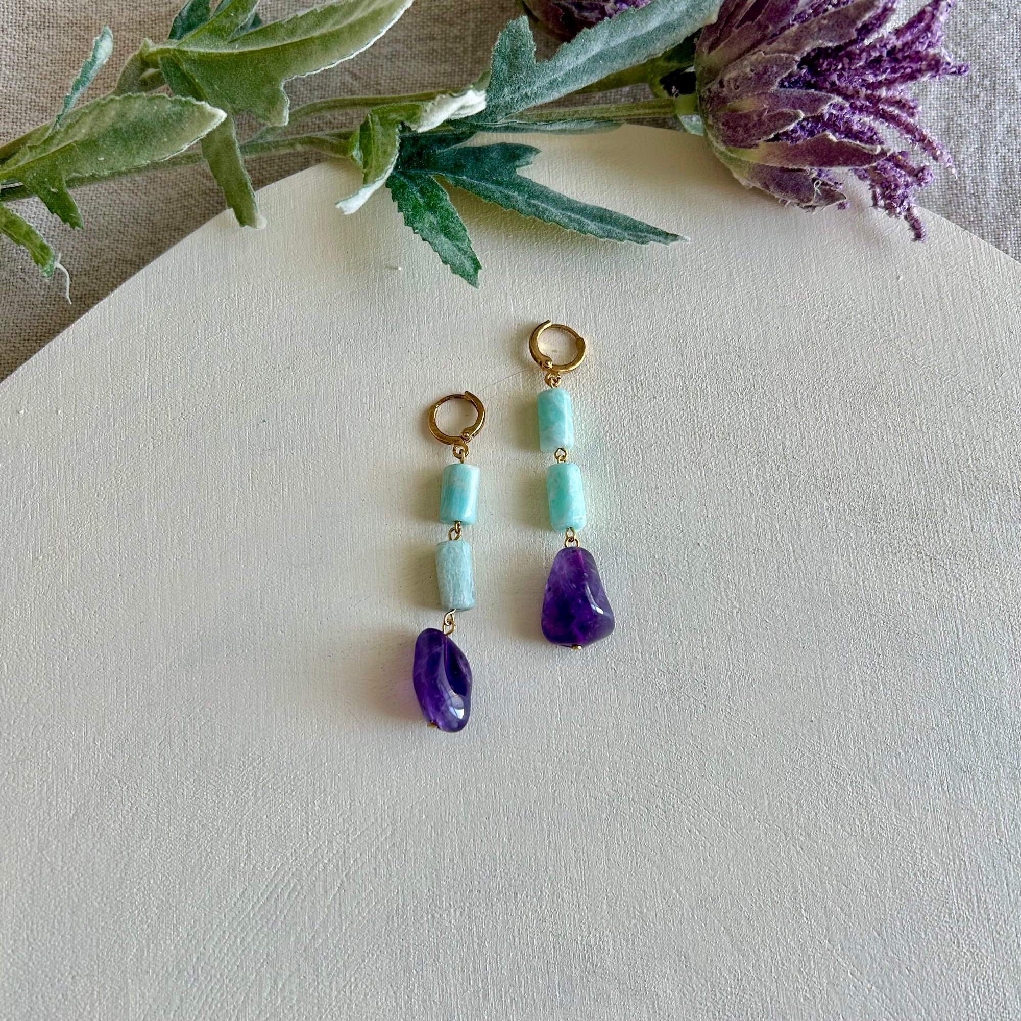 Aro dorado bañado con amazonite y amatista.