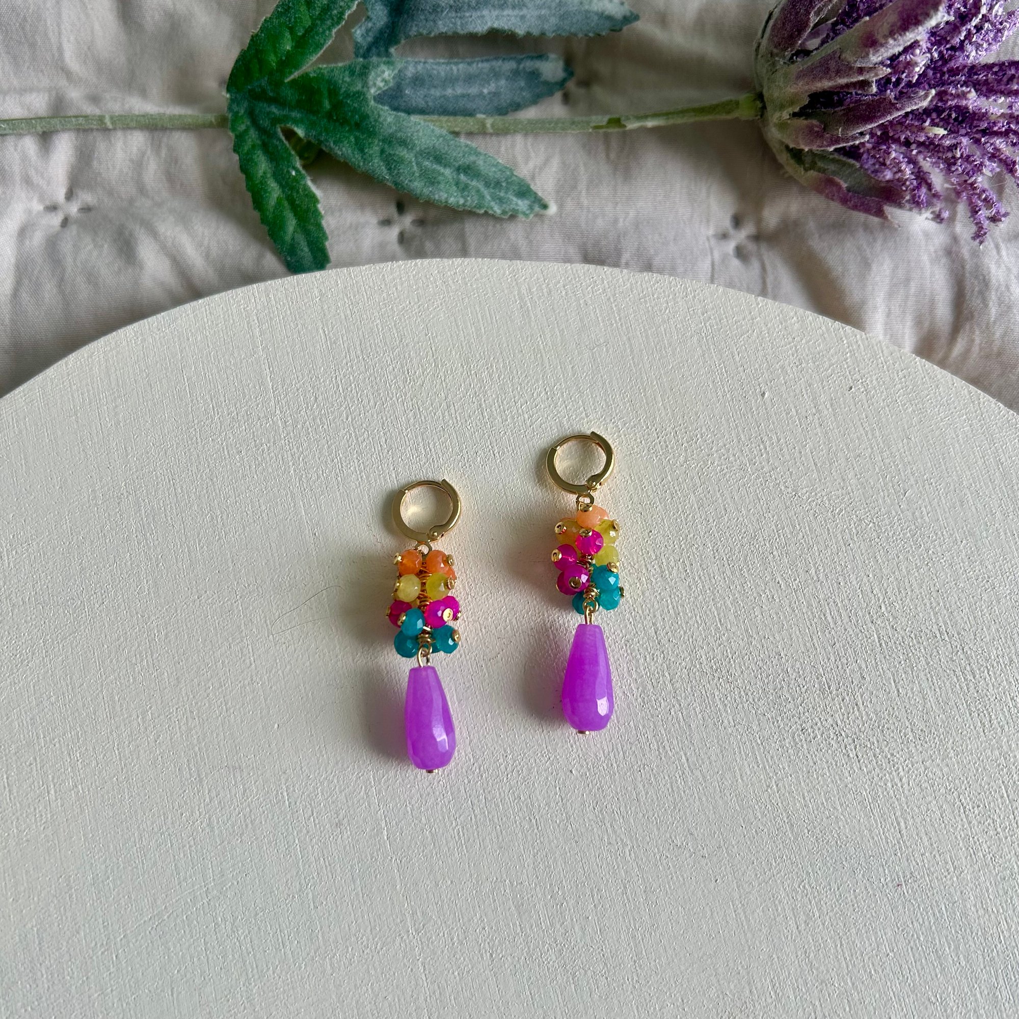 Pendiente ramillete de aro dorado bañado con ágathas naturales.